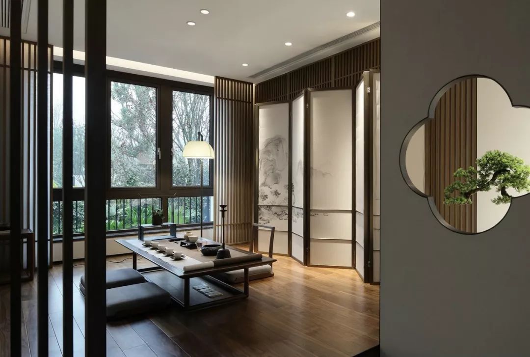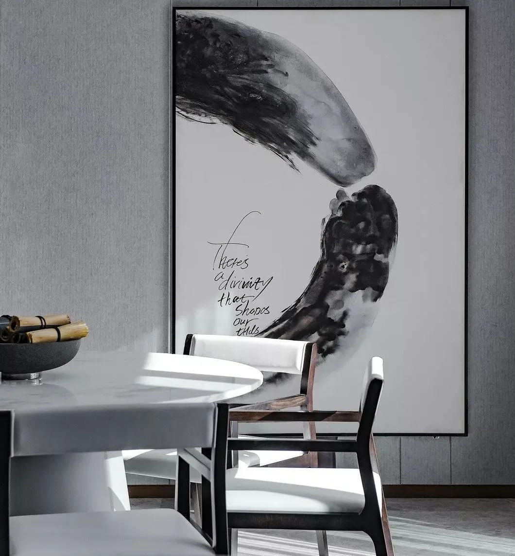 一个含蓄秀美、端庄丰华,一个低调沉静、气质优雅,融合在一起之后竟是如此的对味。它在设计上力求简约,格调高雅,简朴优美。置身其中,不免让人产生禅静如水之感。当新中式与高级灰碰撞在一起,更是东方神韵的极致展现。